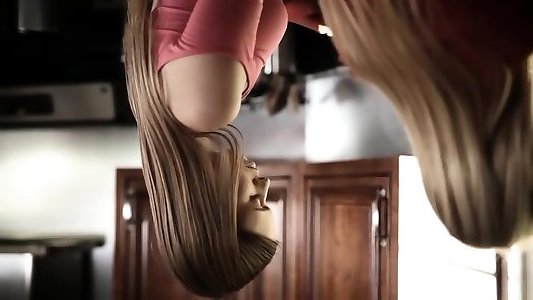 Mom and lesbian teen have fun on the kitchen
