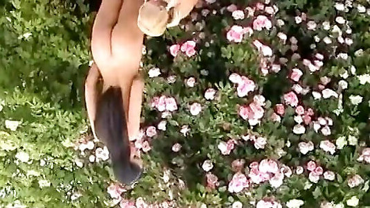 Tastey xxl caboose with assfuck ass-plug relaxing on patio
