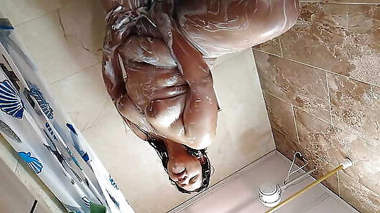 SOAPS UP HER BIG ASS WHILE SHOWING HER TIGHT PUSSY to the Homemade Porn Video she Wants to Record,BBW Showing off her Na