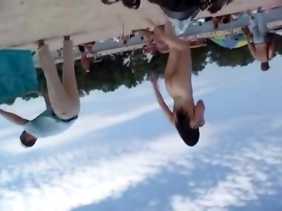 Outdoor vag show. Naked couple plays in the outdoor naturist swimming pool. Regina Noir brief Two