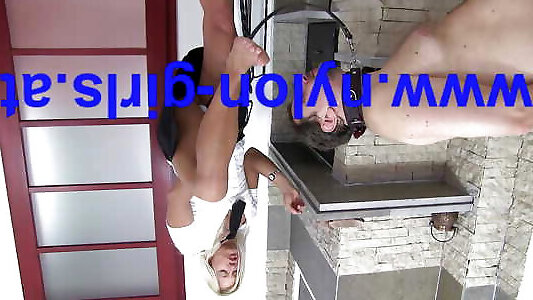 German teen femdom in nylons make BDSM session with slave