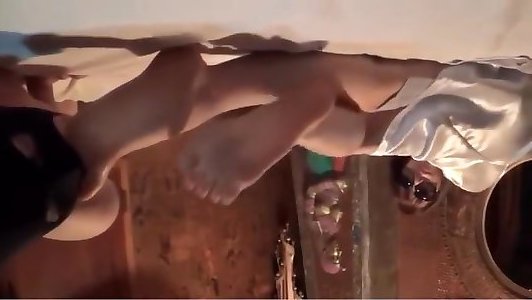 Lesbians in pantyhose worship and massage each other&039;s feet
