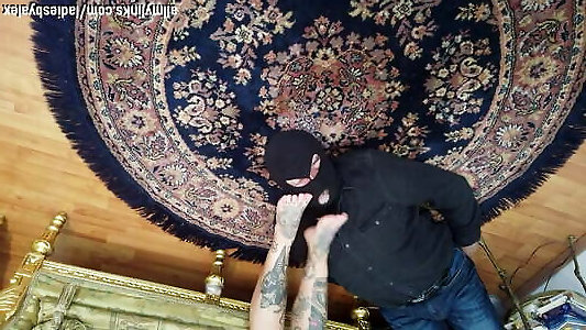 Anna&039;s super-cute feet on gimp&039;s face and super-steamy handjob, footjob