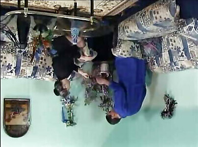 Asian babe and older slut share stud&039;s hard cock on the sofa