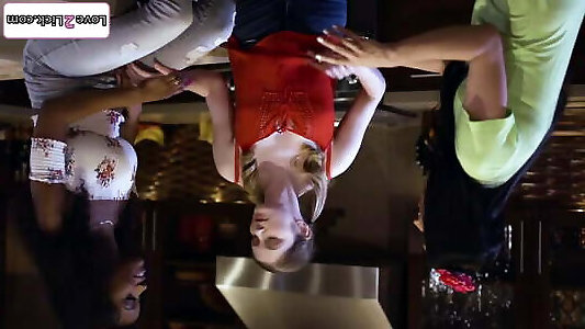 Smallish alien tongues her buxom towheaded neighbor’s soles and snatch