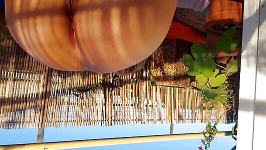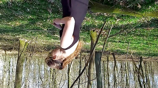 Creaming A Dinky Greedy Sandy-haired Cougar Outdoors