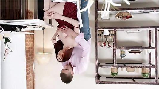 Bi-racial penetrating on the sofa with pallid red-haired Madi Collins