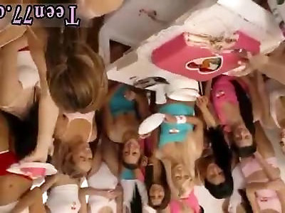 Gang of teenie dolls strip Nutting all over their fetching faces that is...