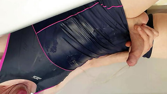 Dousing myself in urinate and cum, splendid swimwear soaking!