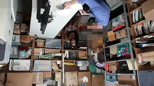 Dark-hued teenager shoplifter screwed by security to avoid the police