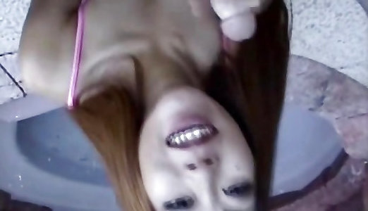 Youthful 19yo female Kiki is wanking her fresh cooch by the masturbating with pool jets side