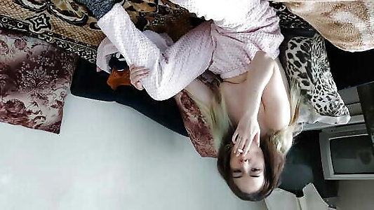 Smoking Egirl giving stepdad handjob and blowjob in bathrobe ask me for full vid