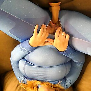 Preggie Samus in torn zero suit poke rock hard her unshaved cooter with a hefty dildo until shoots a load! - Milky Mari Cosplay