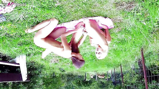 Two Petite Teens 18 get her first Lesbian Experience in the garden