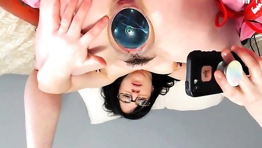 Tatted Black-haired tube gape closeup Petite Breasts Gets live cum eating Smooth Cooch Jammed