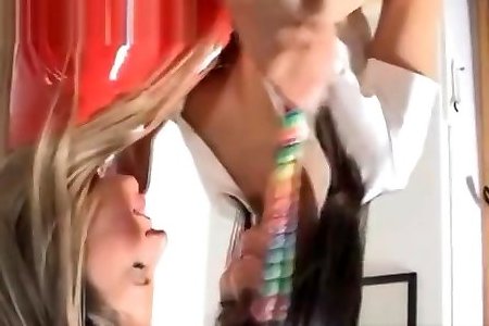backstage - behind the sequences - teacher and college girl roleplay - lezzies in fetish Pvc vag and facehole poke