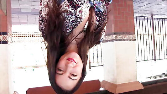 Looking down the half-shirt of adorable Chinese teen tall misteress RAO-006