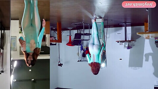 Rehearsals pt1. Jeny Smith in tansparent suit with high heels. Spy cam