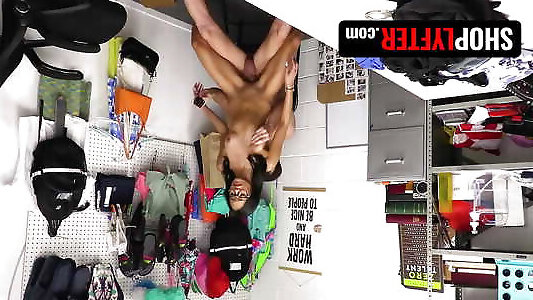 Nefarious Mall Cop Lays Down For A Young Asian Thief By Banging Her Pussy On His Desk - Shoplyfter