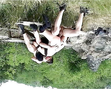 Nasty Italian mega-bitch luvs with 2 peckers in the open air