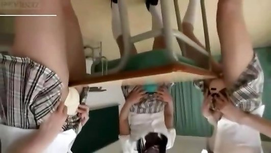 Chinese College Girls panty touch on college desk
