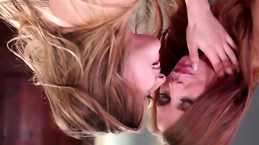 Redhead And Brunette Lesbians Make Out