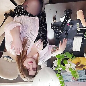 A towheaded shoveled with a fake penis in her bum and a beef whistle in her