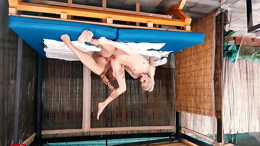 Anissa Kate and Jasmine Jae juggling on top of Ryan Ryder