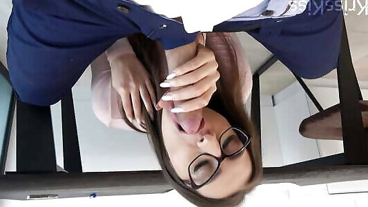 Secretary Orgasms on Her Boss&039;s Cock and Takes a Cumshot on Her Glasses