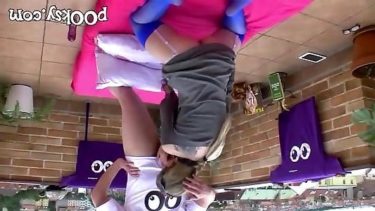 Teen cute teen in panties exercising with Big Tit Handjob on Her Pantyhose in Office