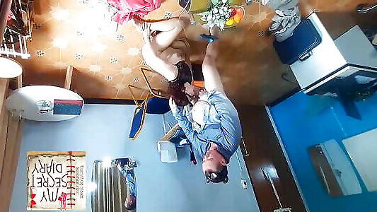 Asian mature chubby busty bouncing tits masturbates and gets wet pussy rammed by her boss on seduced by bf bestfriend kitchen table