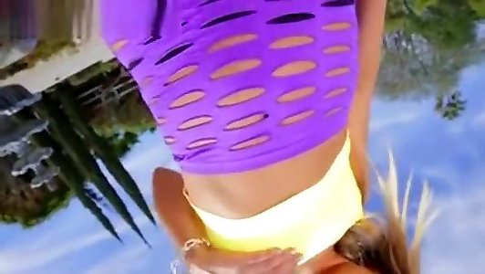 Wifey goes braless in a public exhibitionist dare in a public pool