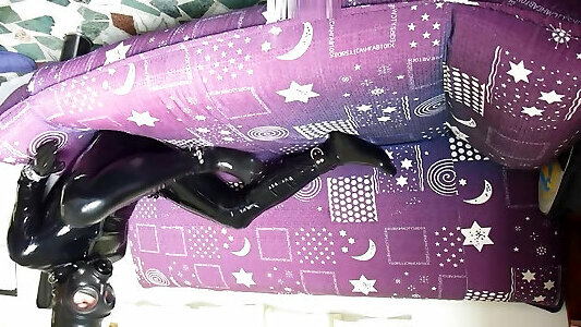 total rubber polish, buttplug in donk, breath manage and jizz in sheath