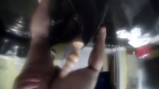 Playing in the bathroom with m 5 bead buttfuck plaything
