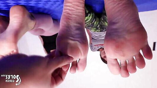 Smelling and sweat-soaked well-lubed feet of 2 first-timer sole Queen