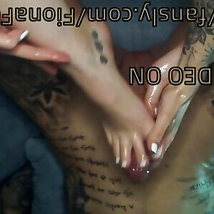 MILF Rubs Oil All Over Her French Pedicure Feet