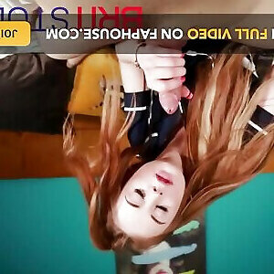 Beautiful petite sperm slut Brooke Johnson slurps her dom&039;s cum off the filthy stairs
