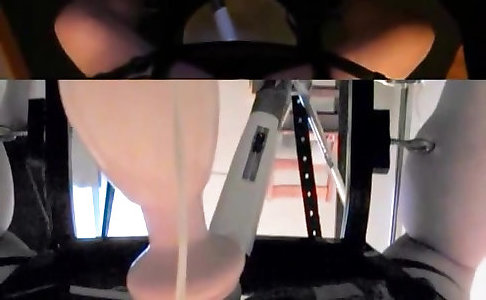 Dark-haired squats on vibrator and gets flagellated