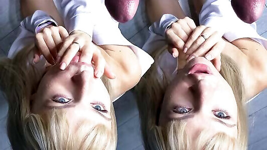 Buxomy Blondie Deepthroats my Hard-on - Jizz Drink