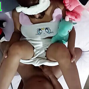 I found my sexy innocent girl playing with her stuffed animals and I convinced her to play with my cock until I came in her tigh