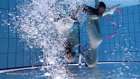 Russian swimmer Lina Mercury and her girlfriend flash underwater striptease