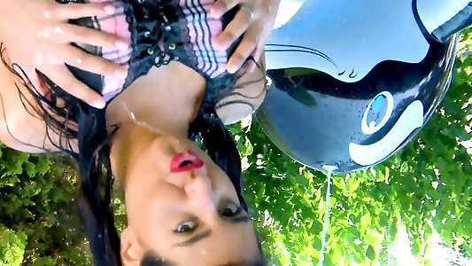 Lovely Brunette Teen Ria Gives Deep Blowjob Outdoors