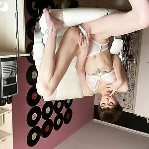 Wondrous thin damsel showcases fun bags and uber-cute arse in nylon tights