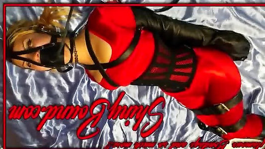 Curvy Brunette doomed by satin clad mistress