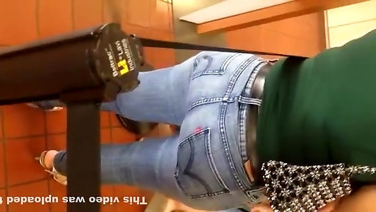 Super Hot culo in cock-squeezing jeans wagging in front of a candid web cam