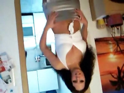 Hot Redhead Petite Latina Big Ass All Natural New Wife in the Kitchen No Panties No Bra in a Summer Dress to show Pussy and Ass