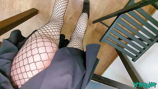 A Cute Schoolgirl In Stockings Will Delight You With A Jerk Off With Her Legs and Her Wet Pussy