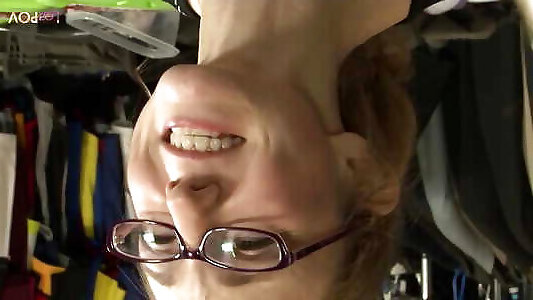 An amazing POV-style blowjob for his tiny dick by a hot brunette