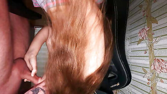 Sucking off the handyman&039;s small cock as a reward for his hard work