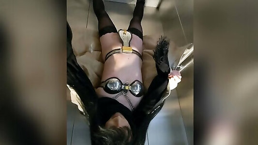 Subby&039;s Secret... Tranny with chastity belt and gag while shopping!!